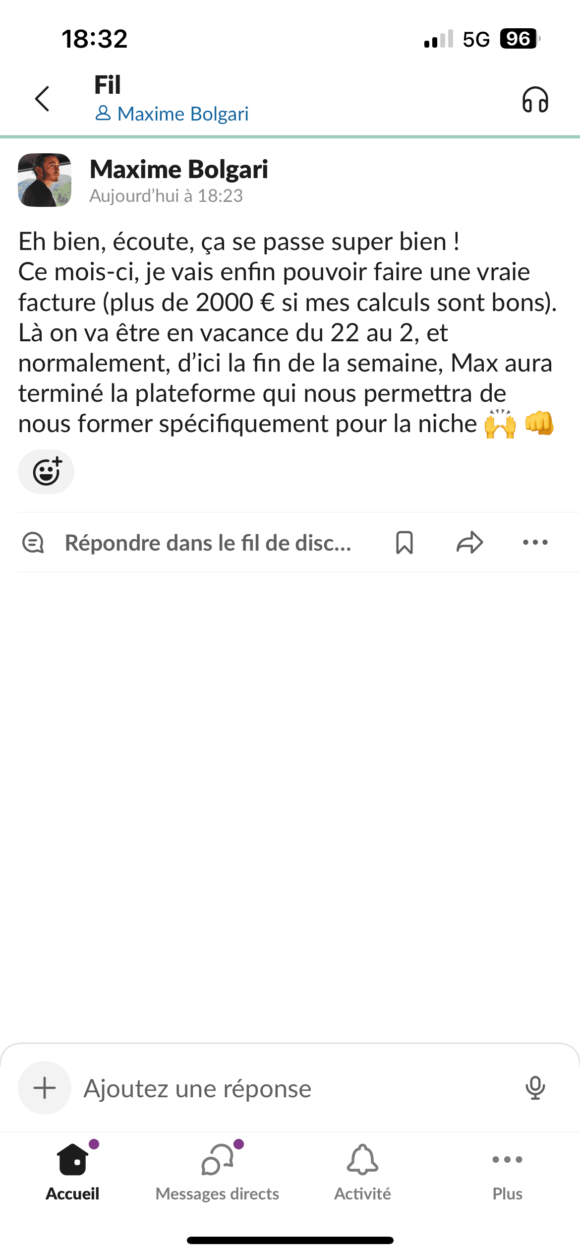 Préqualification de leads réels avec feedback direct : Tu avances avec des corrections précises qui te font progresser 10x plus vite que si tu étais seul.